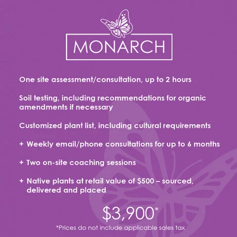 The numbers of birds, butterflies, moths and bees have greatly declined in recent years, yet they are essential for the production of most of the fruits and vegetables we eat every day. Columbine offers expert advice on how to plan your outdoor space with a focus on native and pollinator-friendly plants by helping you identify, enhance and create habitat using organic methods. Learn how to implement best practices that will encourage the natural world around you to flourish. We invite you to explore our tiered pricing programs that begin at $1,100.
